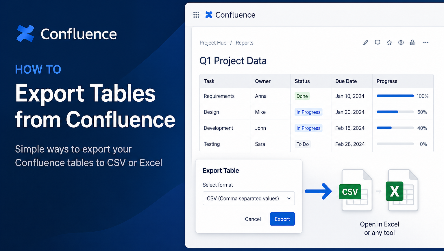 Learn how to export tables from Confluence. Discover manual methods, limitations, and how to quickly export tables to CSV or Excel without formatting issues.